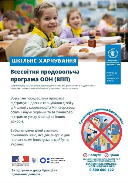 Олександрівський ліцей є учасником проєкту щодо надання фінансової підтримки закладам загальної середньої освіти, що реалізується спільно з Всесвітньою Продовольчою Програмою Організації Об’єднаних Націй.