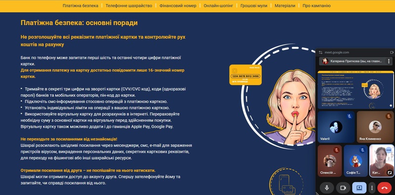 Сьогодні для учнів 11 класу відбувся важливий та актуальний захід, під час якого старшокласники ознайомилися з національною інформаційною платформою #ШахрайГудбай (https://promo.bank.gov.ua/stopfraud/#section-19).